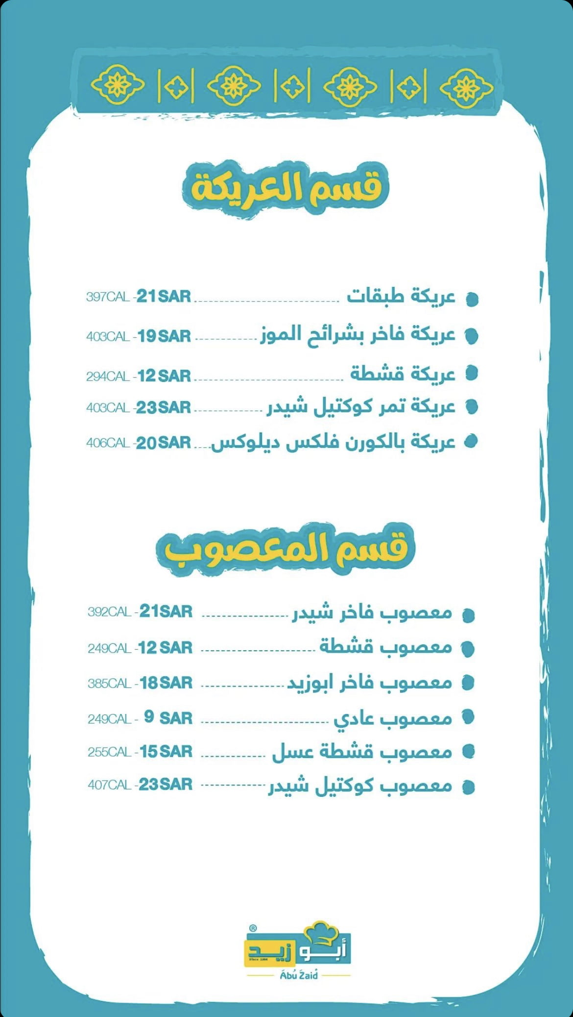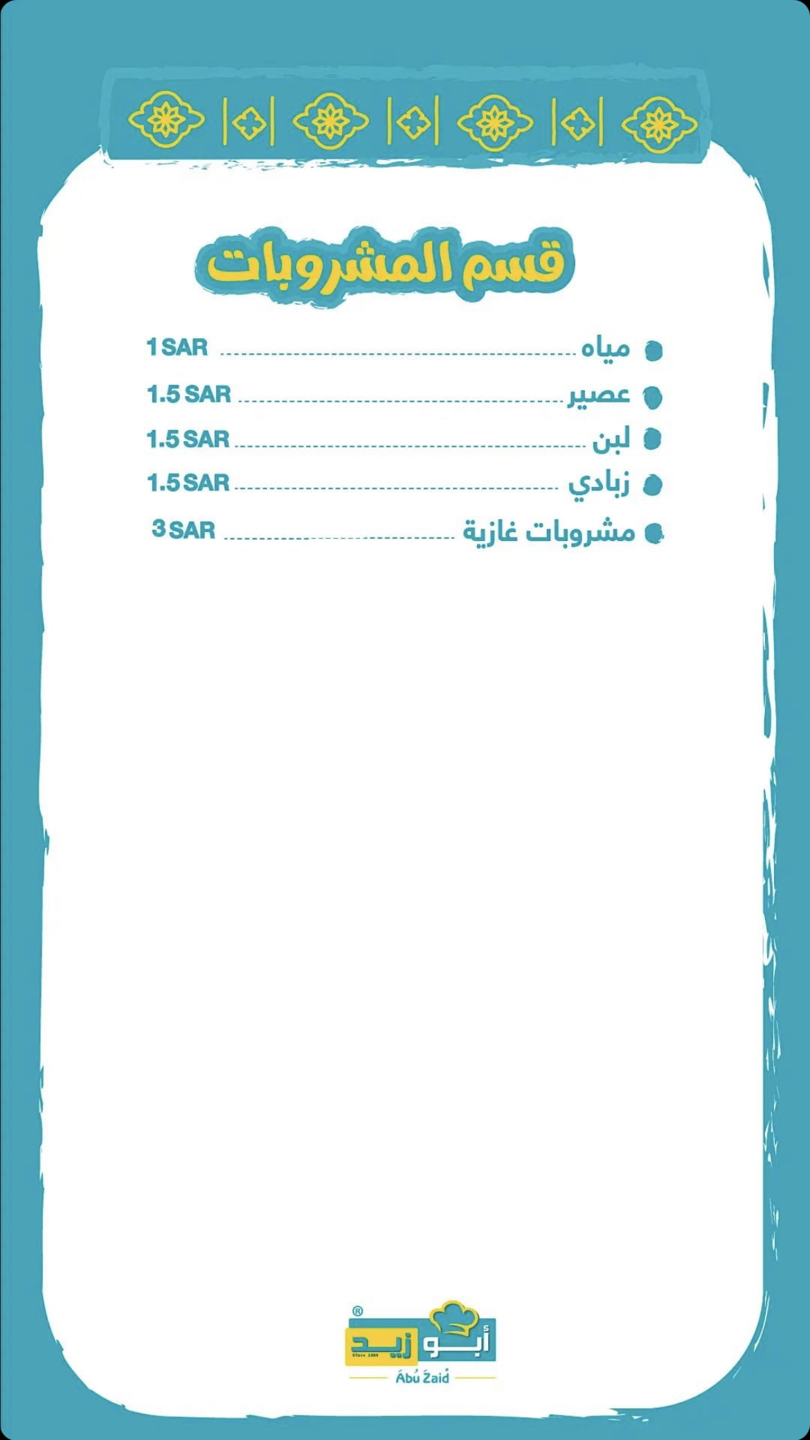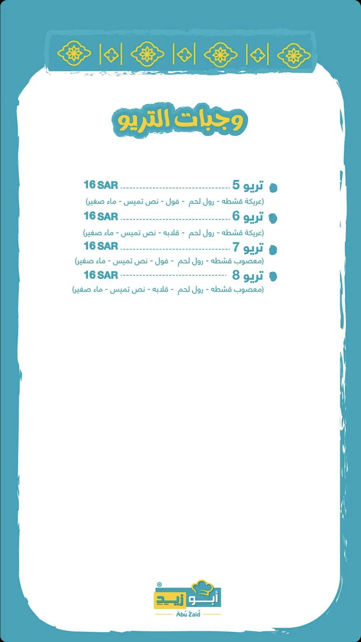 منيو مطعم ابو زيد الباحة