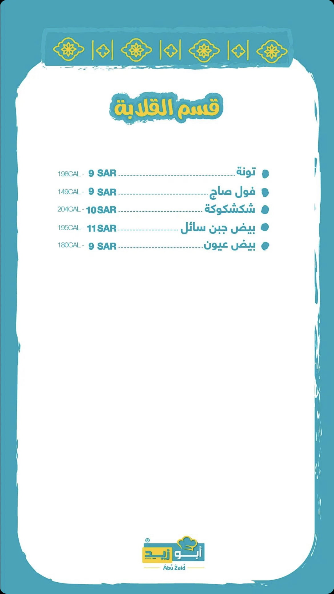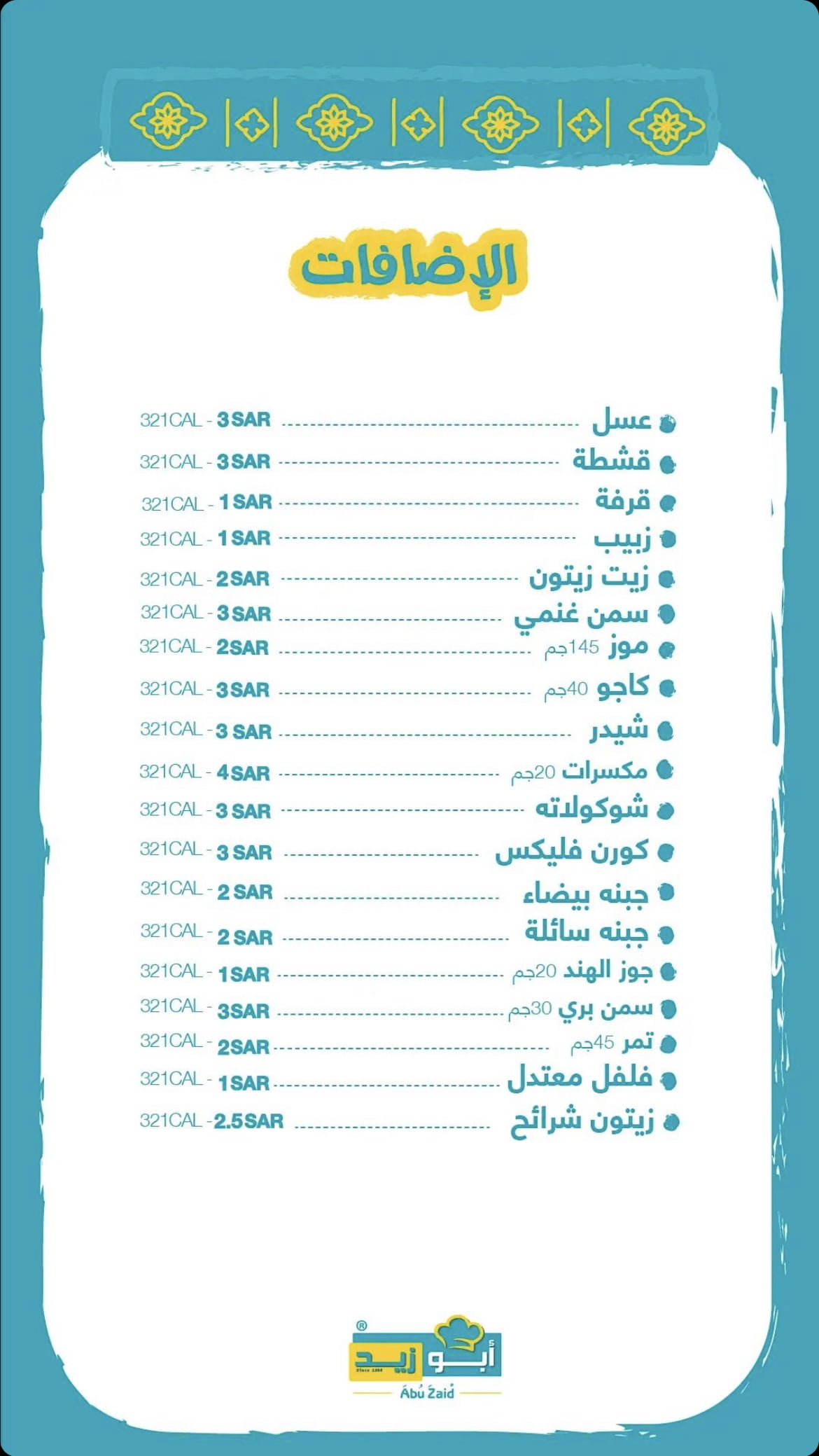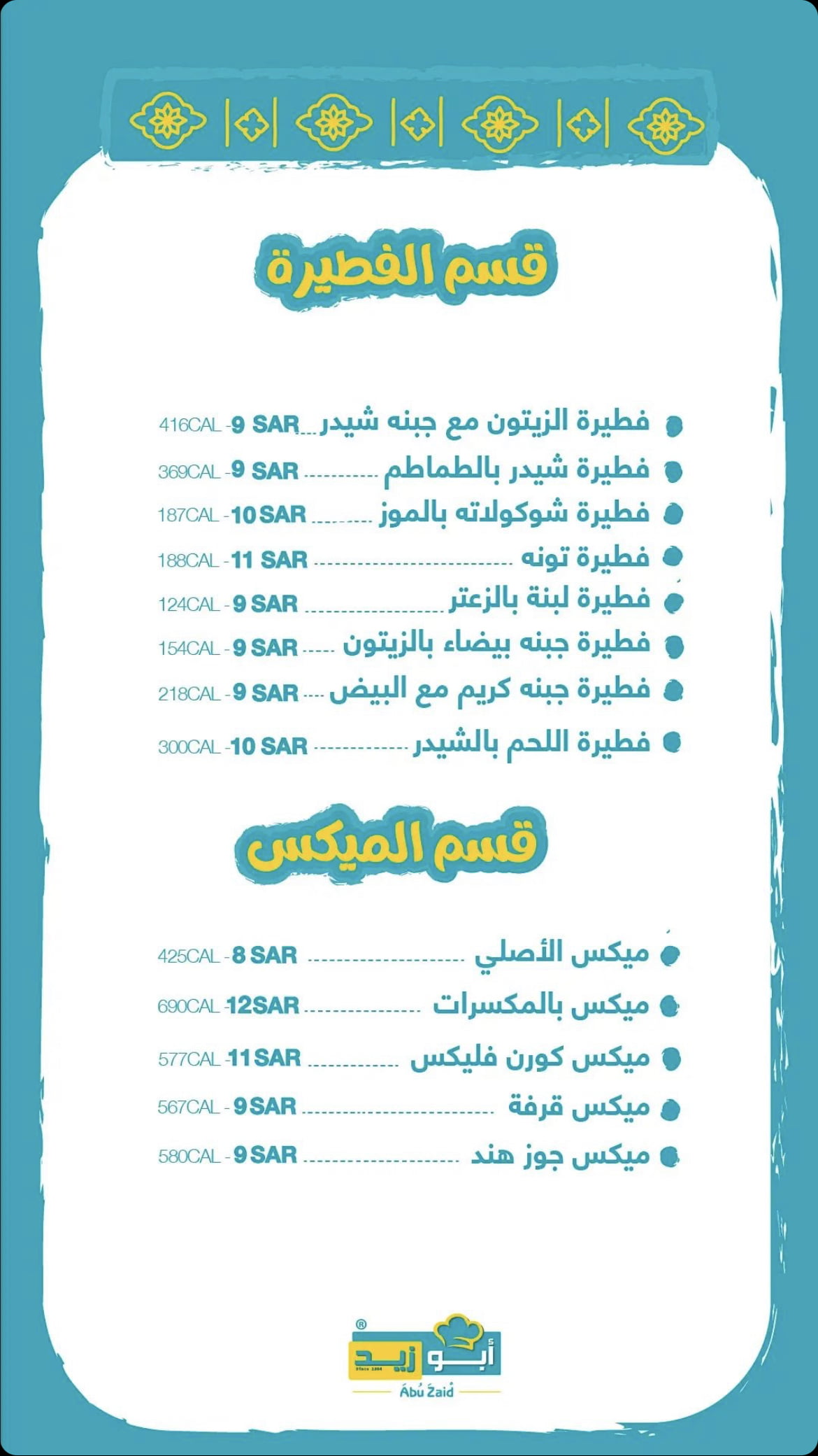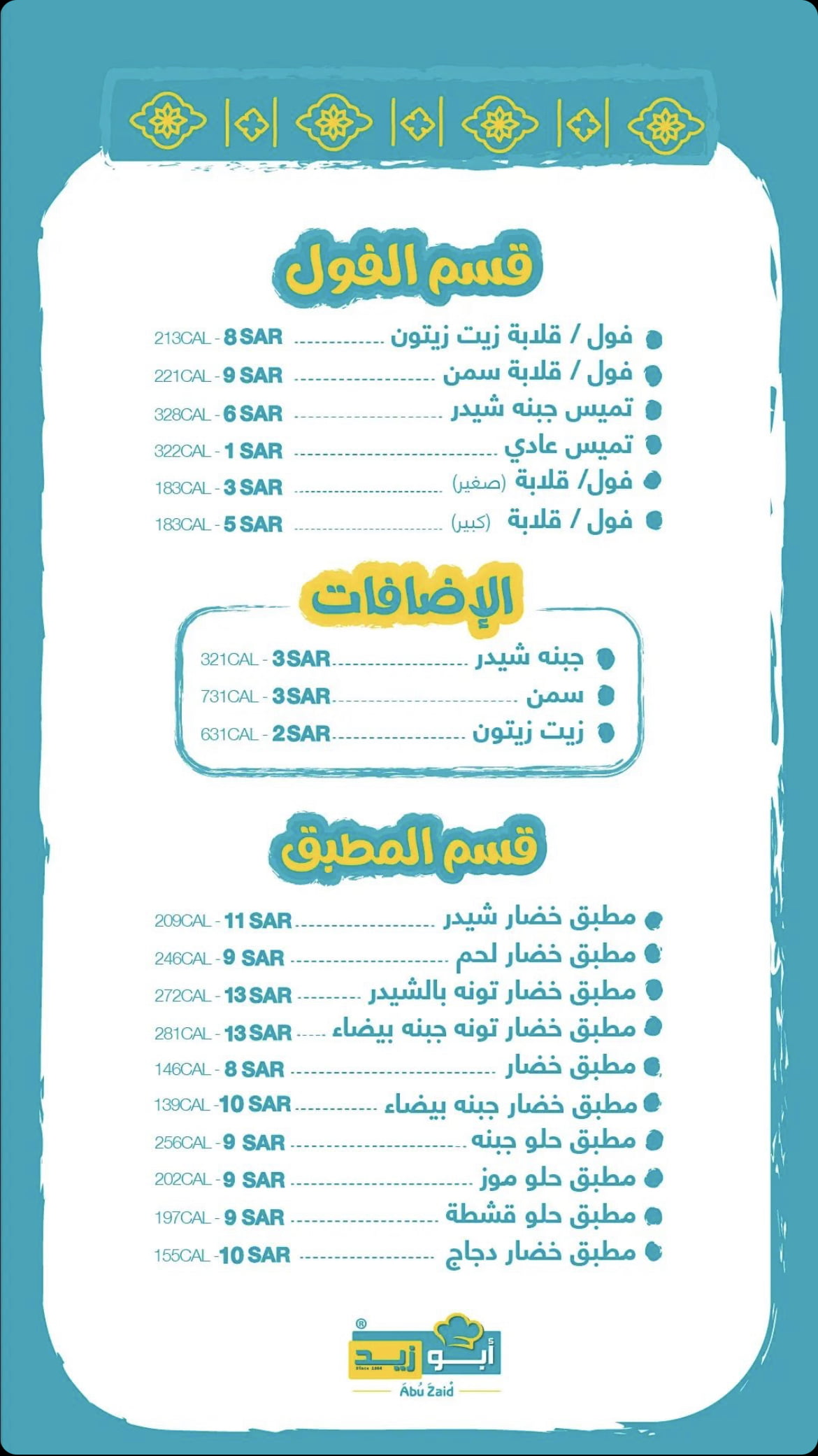 منيو مطعم ابو زيد الباحة