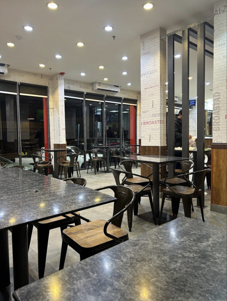 زرت المطعم خمس مرات 3 مرات سفري و4 مرات فالمطعم الجلسات صراحة مو مريحه وتكون وصخة ماتتنظف الين يجي زبون يطلب الجلسة والحمامات كذلك اتمنى تهتمون بنظافتها اما الاكل كل مره يتغير طعم الشاورما للاسف إلى الأسوا اما البروستد ومسحب السمك الحراق لذيذه اتمنى الشاورما ترجع لذيذه زي اول مره جربتها لان الدجاج حالياً فيه طعم زفره وشكراً