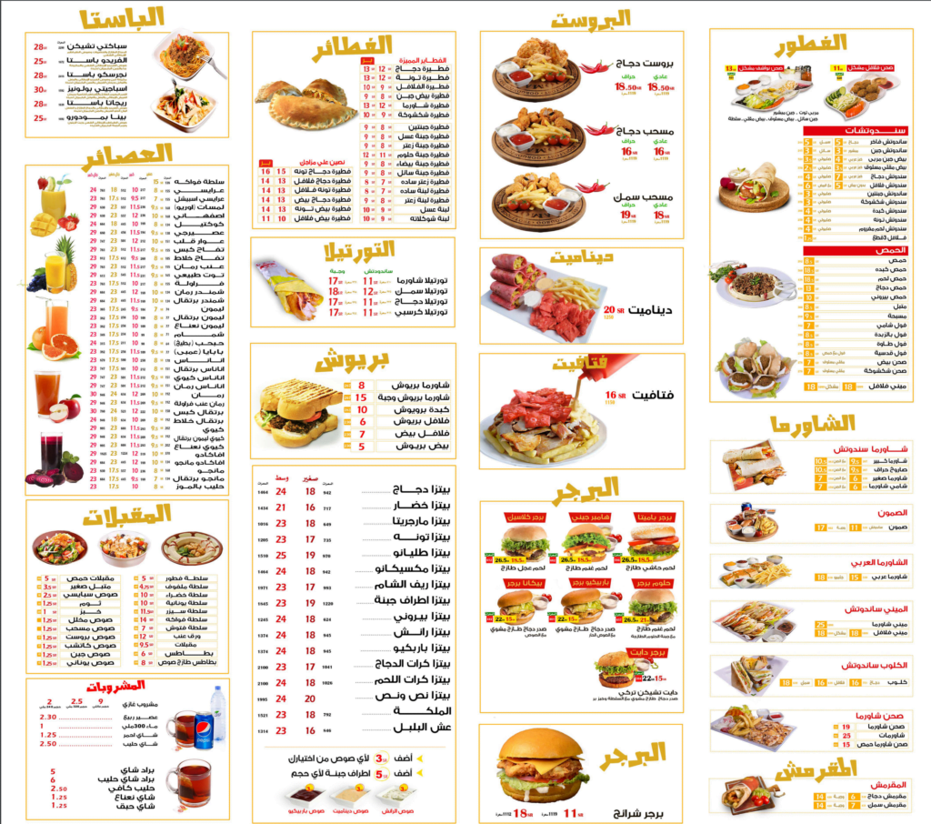 النوع: مطعم يقدم البروست والشاورما والفطائر