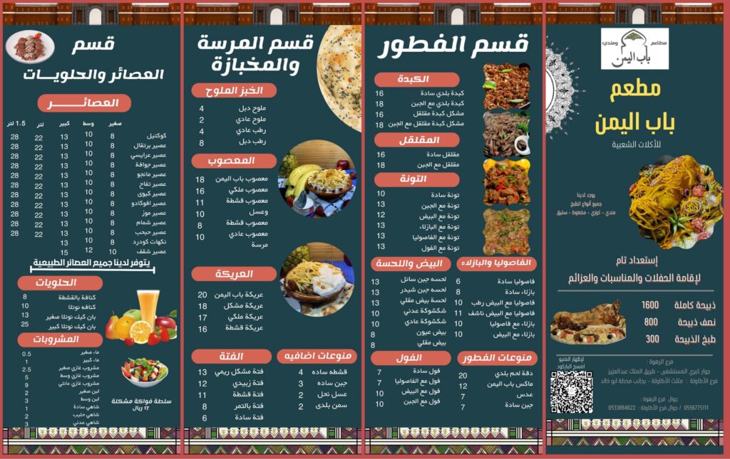 منيو مطعم ومندي باب اليمن الباحة